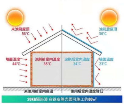 根據(jù)建筑節(jié)能體系計算,大量試驗結(jié)果表明,當(dāng)太陽反射率和半球發(fā)射率為0.80時,反射隔熱涂料具有明顯的隔熱保溫性能,例如:以南京地區(qū)氣候為代表:當(dāng)太陽反射率和半球發(fā)射率為0.80時,反射隔熱涂料等效熱阻可以達(dá)到0.16~0.20m2K/W(根據(jù)朝向、基層墻體不同有區(qū)別),以廣州地區(qū)氣候為代表:當(dāng)太陽反射率和半球發(fā)射率為O.80時,反射隔熱涂料等效熱阻可以達(dá)到0.15~0.28m2K/W(根據(jù)朝向、基層墻體不同有區(qū)別)。